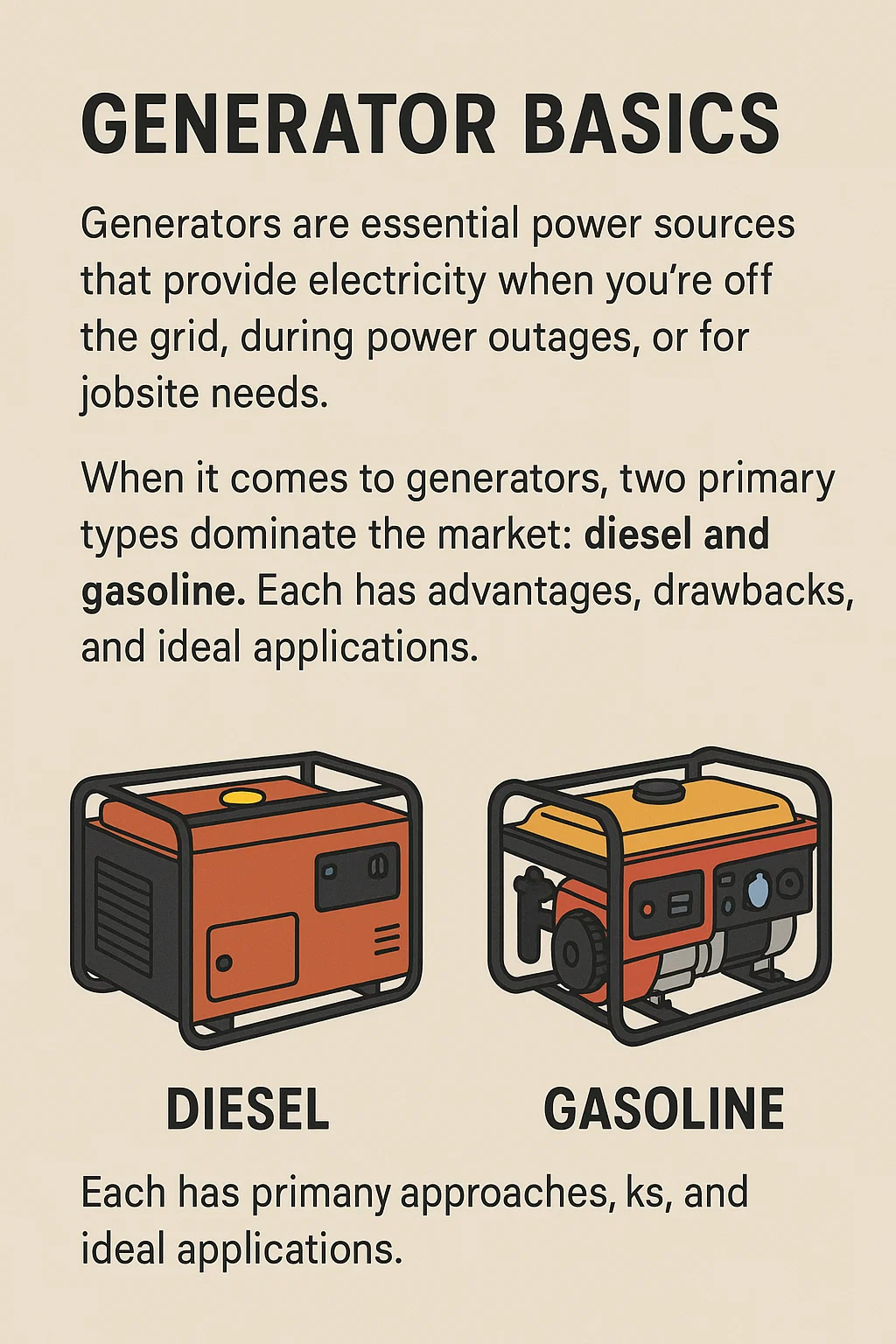 En ce qui concerne les générateurs, deux principaux types dominent le marché : diesel et essence . Chacun a son propre ensemble d’avantages, d’inconvénients et d’applications idéales. Comprendre ces différences peut vous aider à prendre une décision éclairée sur celle qui convient le mieux à vos besoins en énergie.